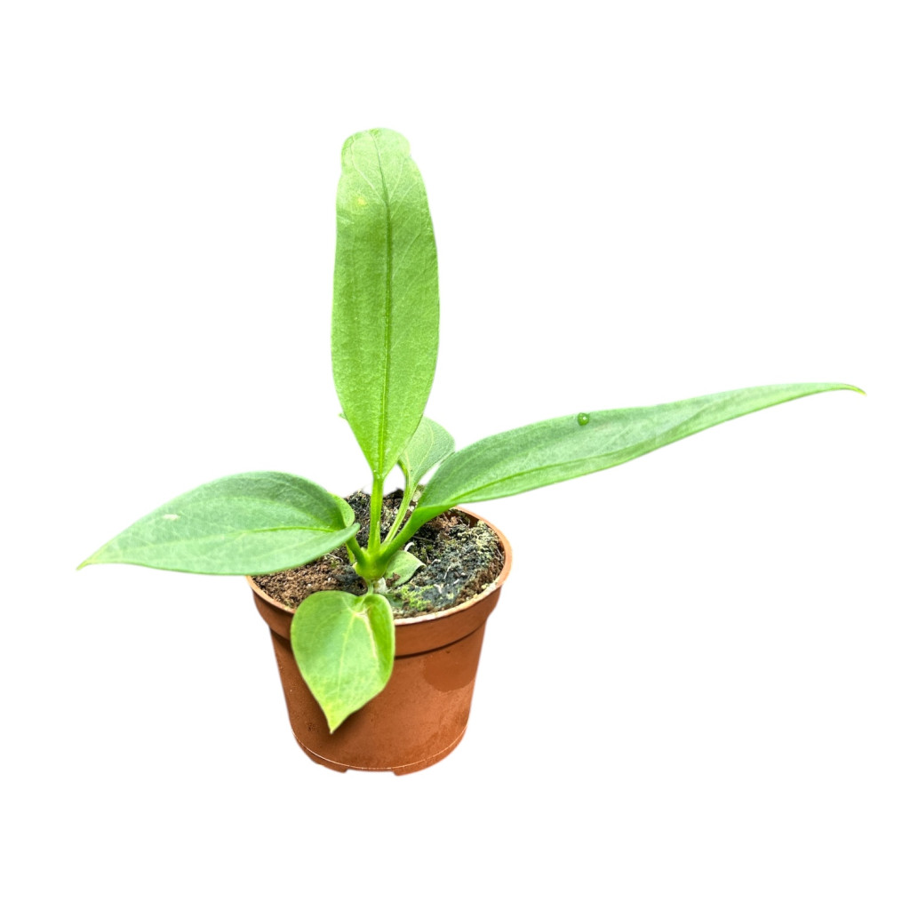 Leírás: Közép- és Dél-Amerikában honos, "fél-melegházi" anthurium faj; hosszúkás levelei sötétzöldek, bársonyosak, enhén csillognak; leveleinek jellegzetes mérete és formája már fiatalkorban is látványos-> feltűnően hosszúak, vékonyak, keskenyek, olykor kissé gyűröttek, egy erős főér felezi meg őket; a növény különleges virággal bír, mivel az Araceae család tagja, ezért kontyvirágot fejleszt, melynek a torzsavirágzat része extrém hosszú és spirálos; gyűjtői különlegesség, ám lakásban is könnyen tartható epifiton növény;
