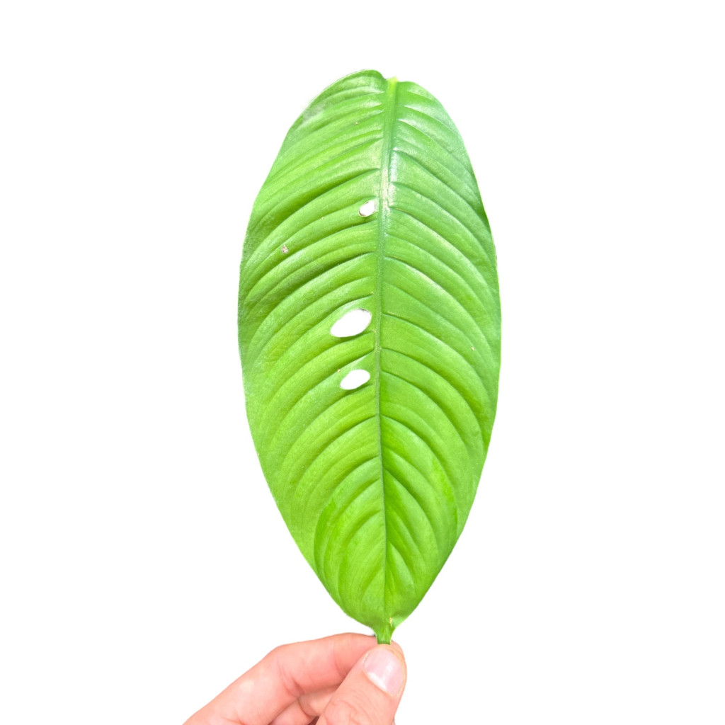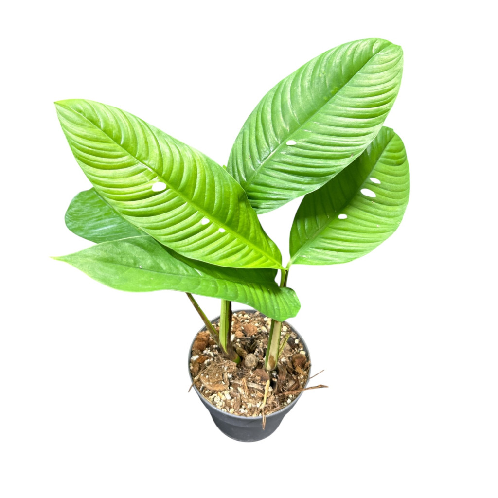 Leírás: A faj őshonos elterjedési területe Nyugat-Máléziai biogeográfiai régió (Malajzia, Thaiföld és Borneó). Egy kúszónövény, nagy méretű, hosszúkás levelekkel. A növény idősebb korában növesztett levelein kizárólag a főér mentén nyílások keletkeznek. A „foraminifera” név ezekre a jellegzetes perforációkra utal, latinul a „foramen” lyukat vagy nyílást, a „fera” pedig viselőt jelent. Az exklúzívan felnőtt levelek lyukacsossága valószínűleg amiatt alakult ki, hogy javítsa a fény által el nem ért levelek fotoszintetikus hozamát. Elegáns tartása és bordás levelei, illetve az említett egyedi módon lyukacsos időskori levelei miatt tűnik ki a többi karó mellett nevelhető araceae közül.