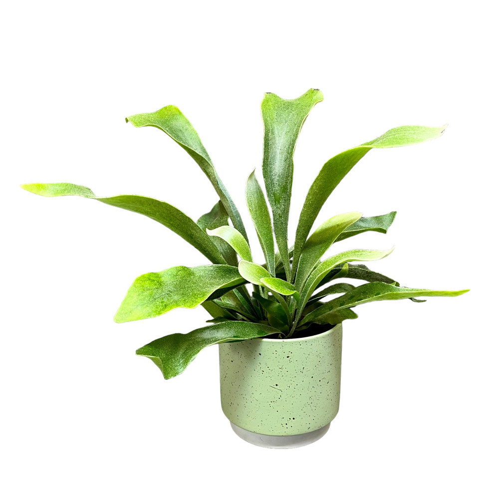 Leírás: Ausztráliában őshonos, mutatós epifiton (fán lakó) páfrányféle; 2 féle levéllel rendelkezik-> egy steril kapaszkodólevéllel, mely félkör alakú, erezete szembetűnő, ennek segítségével kapaszkodik meg a fák törzsén, illetve ezek segítségével jut tápanyaghoz, méghozzá úgy, hogy ezen levelek közé gyűlik össze a lehulló falevél, növényi/állati maradék, melyeket a kapaszkodólevelekkel együtt 'megemészt' a növény; másik levele egy lefele csüngő, szarvasagancsra hasonlító, 'termő' levél, melynek fonákján időskorában spóráit neveli; fiatalkori levelei egyszerűek, végük lekerekített; kapaszkodólevelei egy idő után bebarnulnak, ez természetes folyamat; könnyen tartható, extra kinézetű szobanövény; kezdők száméra is ajánljuk